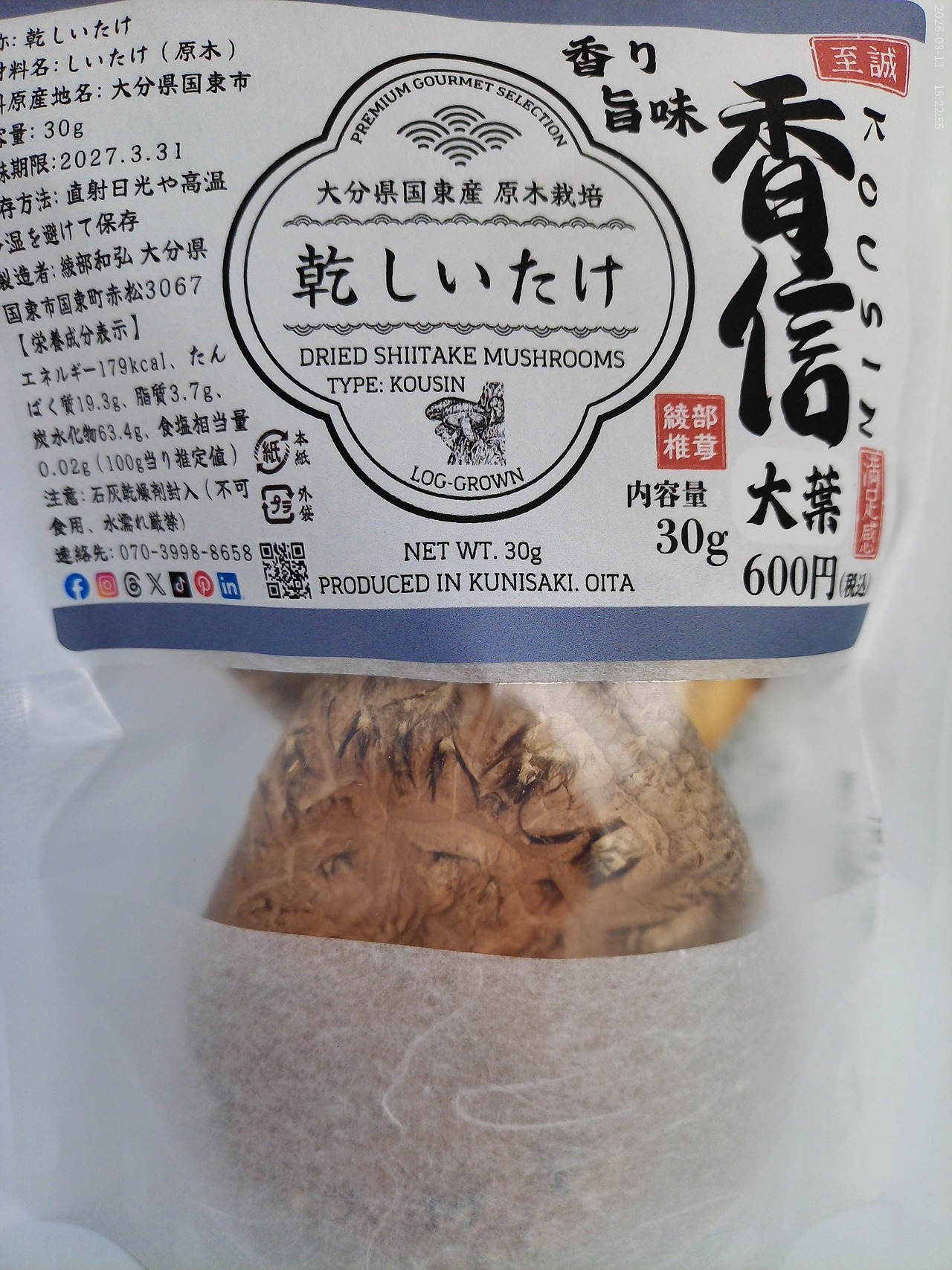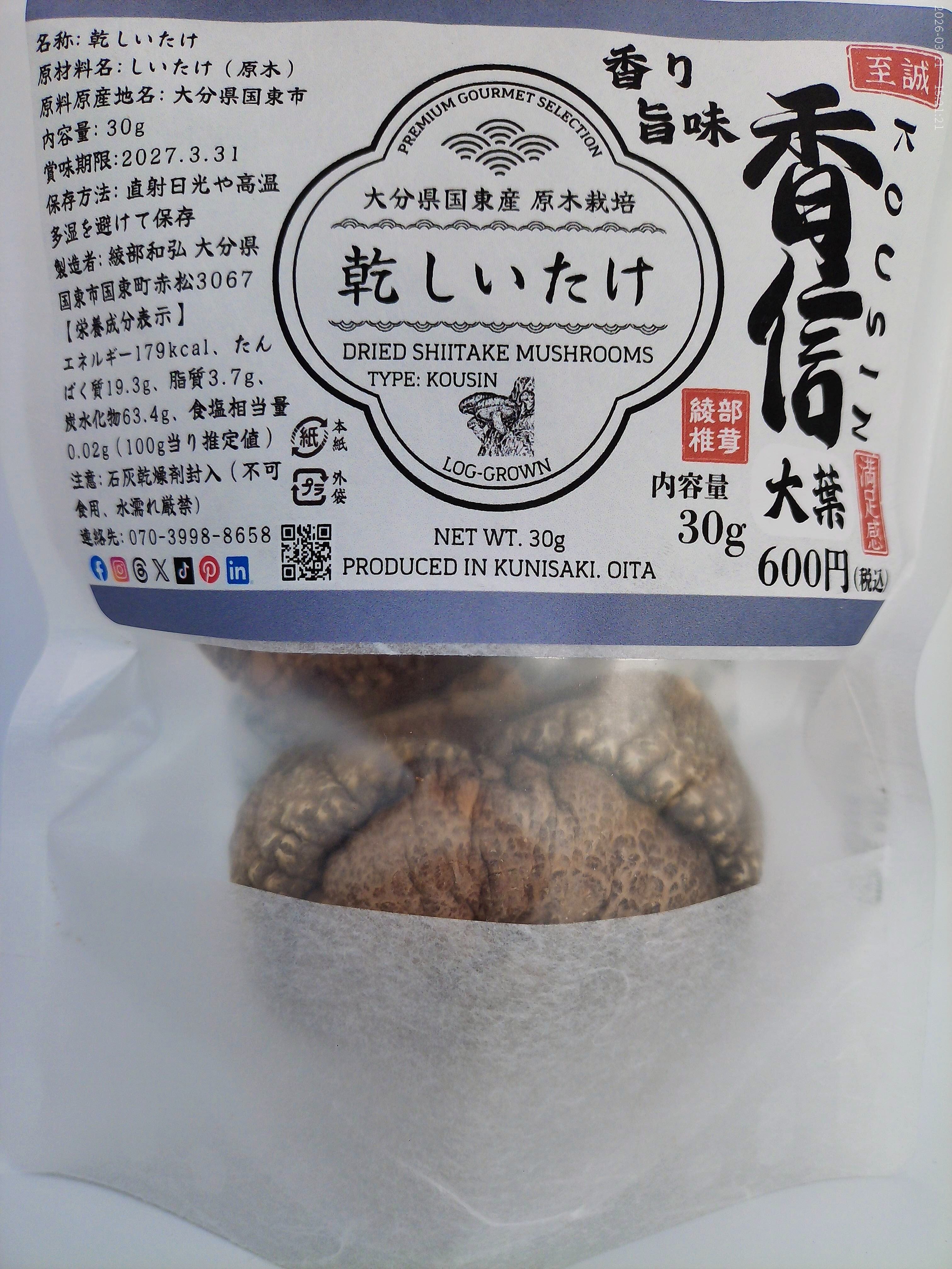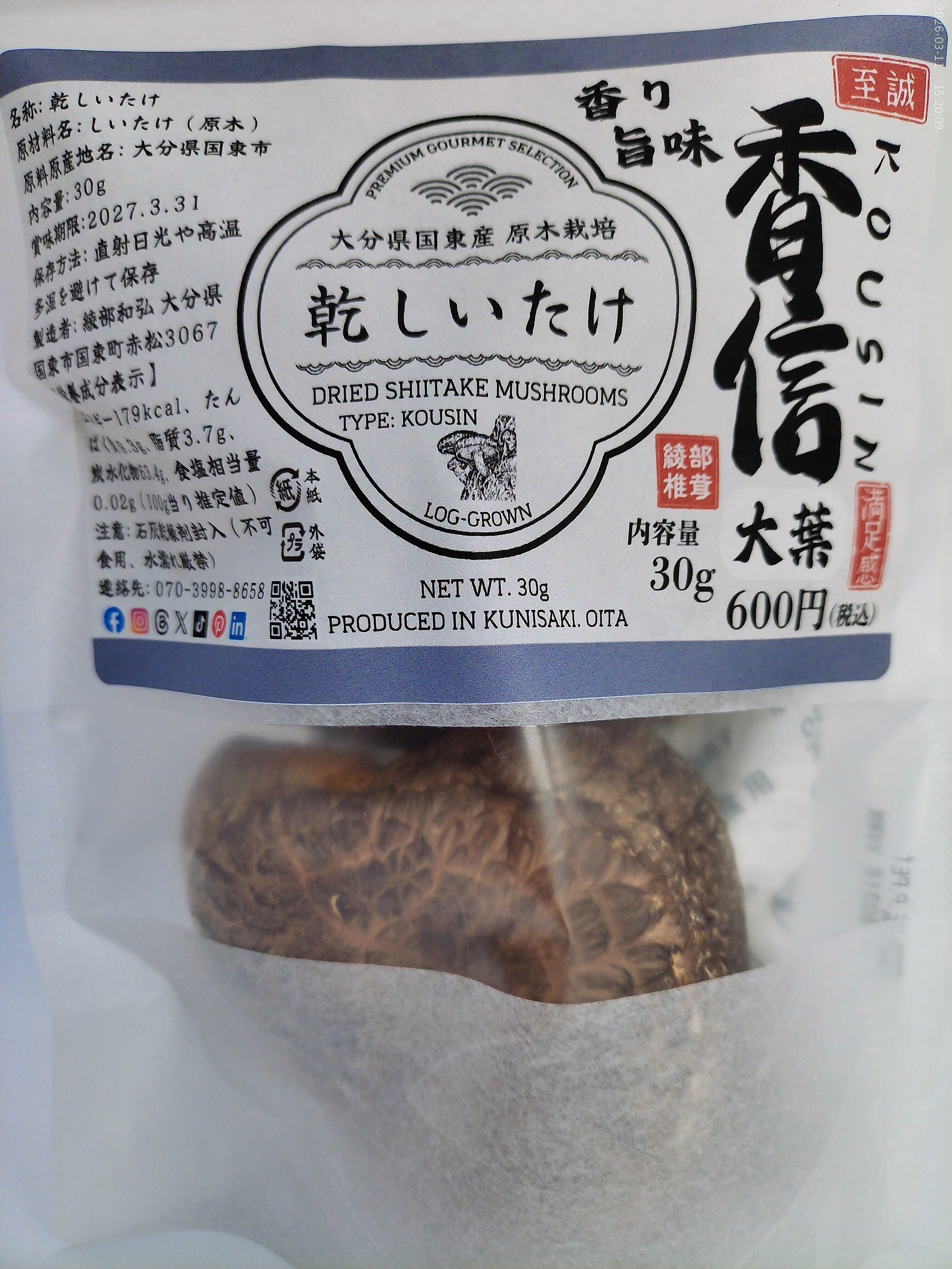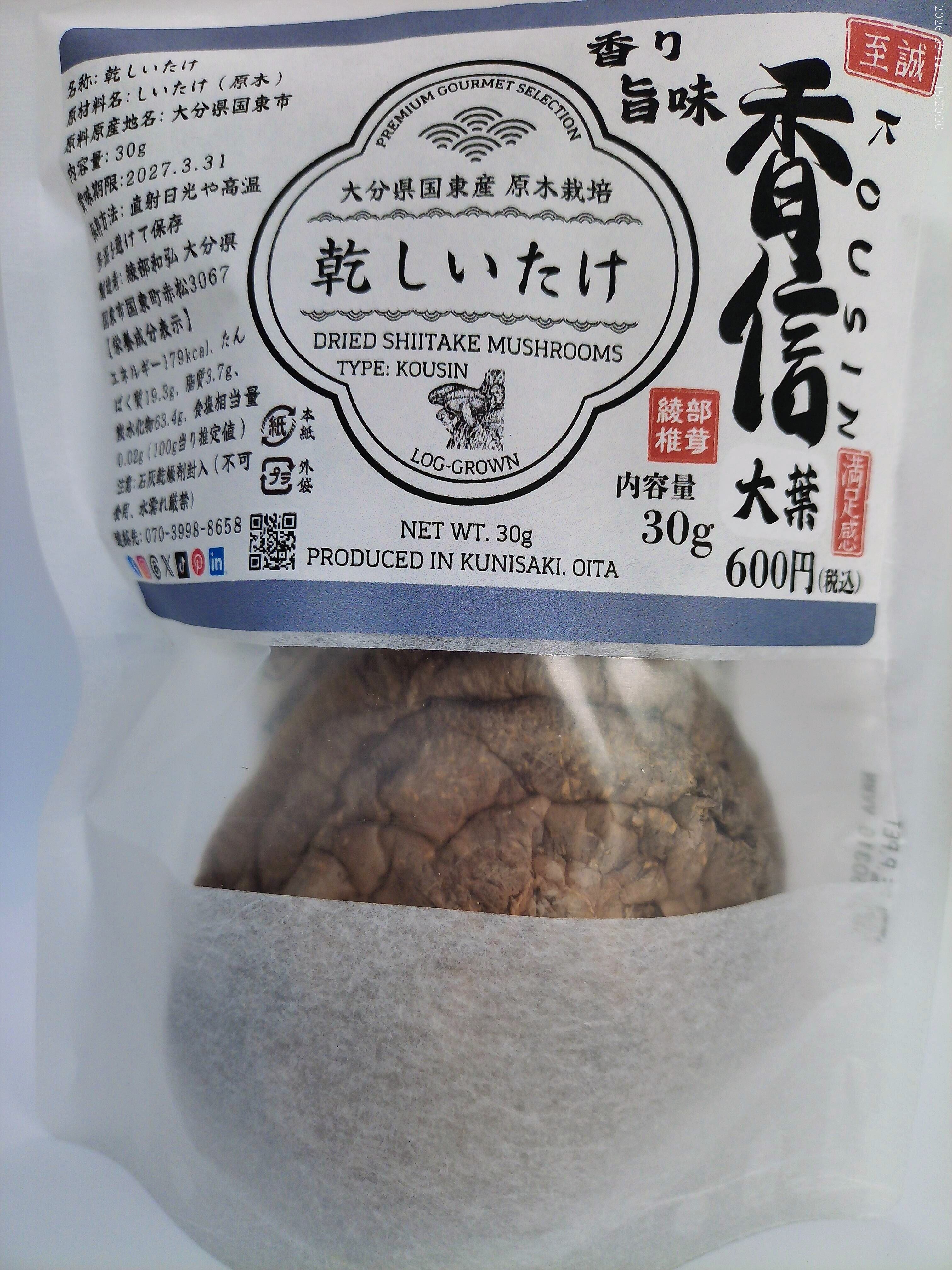 大分県国東産 乾しいたけ 30g(香信大葉)2袋 計60g