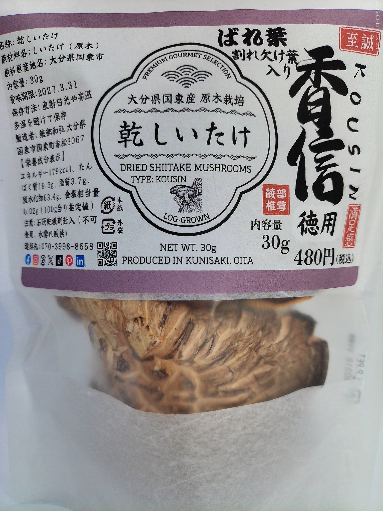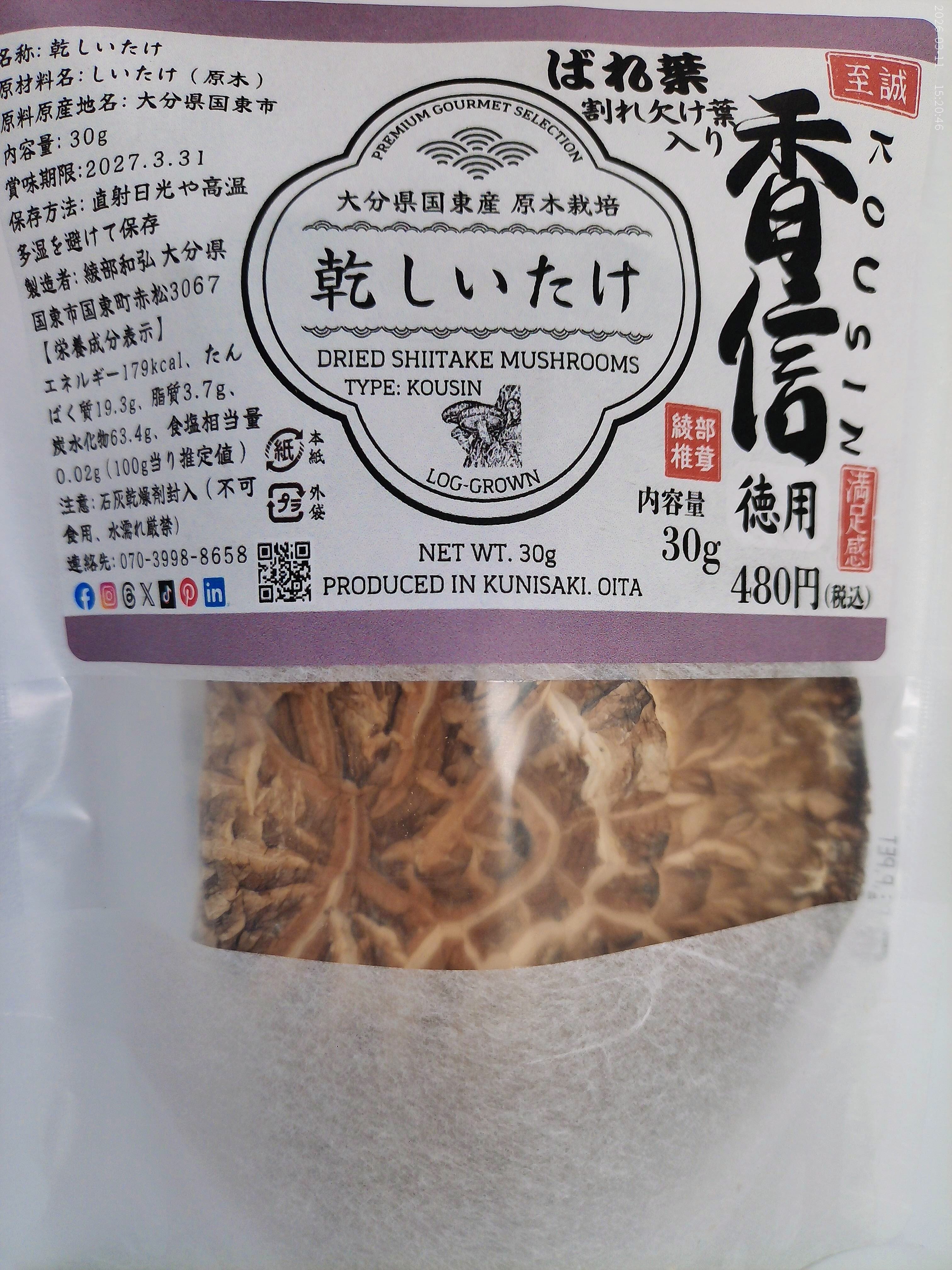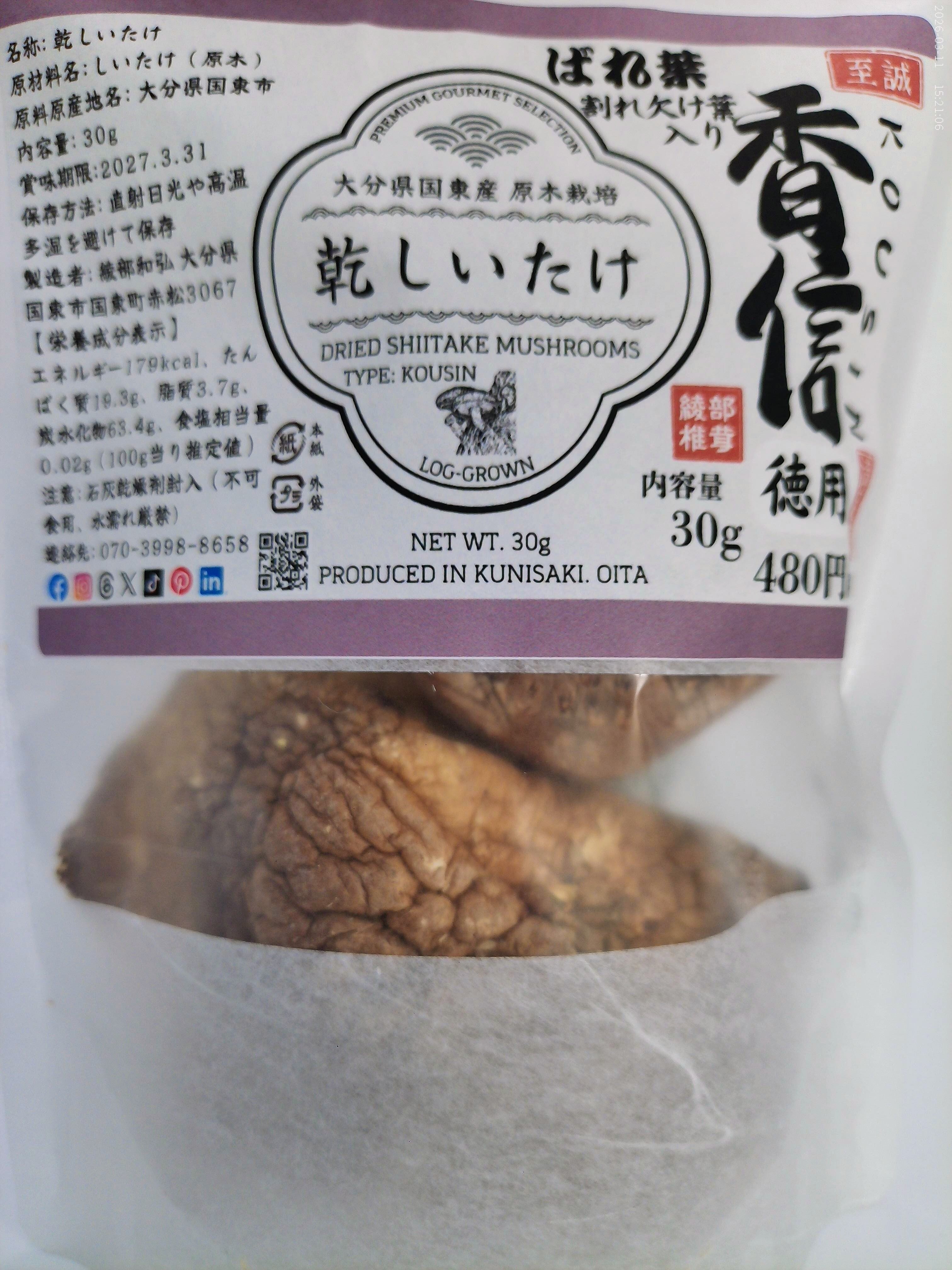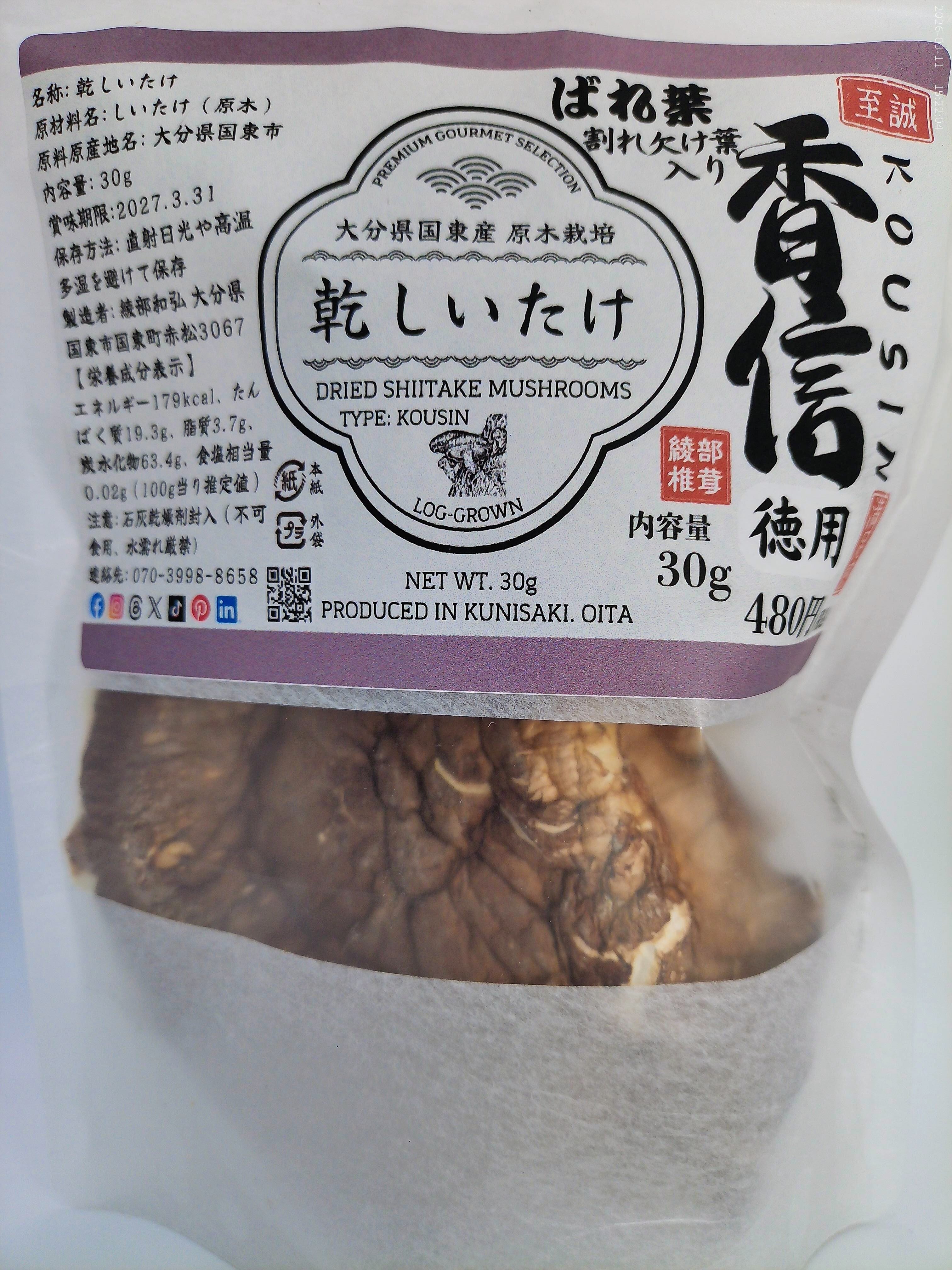 ■ 商品名 大分県国東産 お得用 乾しいたけ 30g(香信バレ葉)2袋 計60g